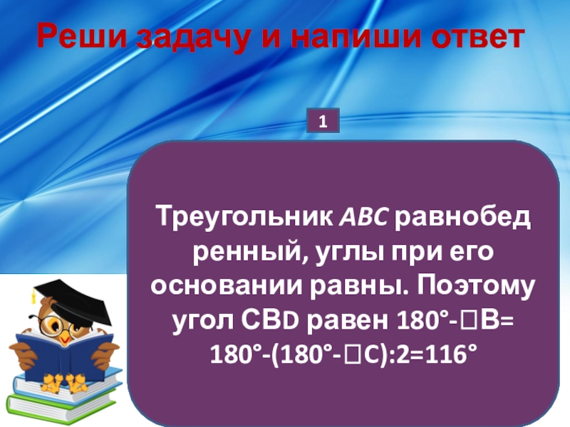 Треугольник ABC равнобедренный, углы при его основании равны. Поэтому угол С равен 180°-2ꓡВ= 180°-2(180°-ꓡCВD)= 180 -116°=64°