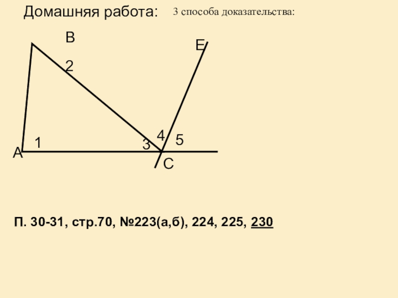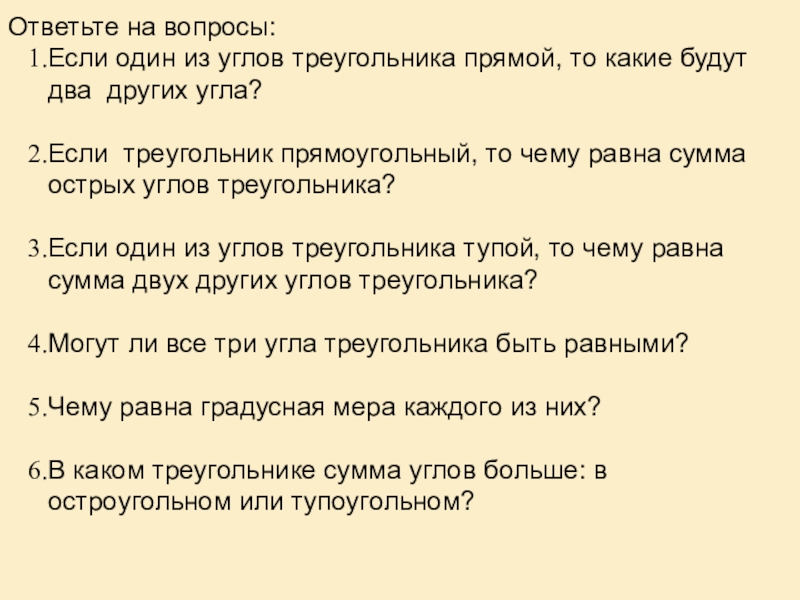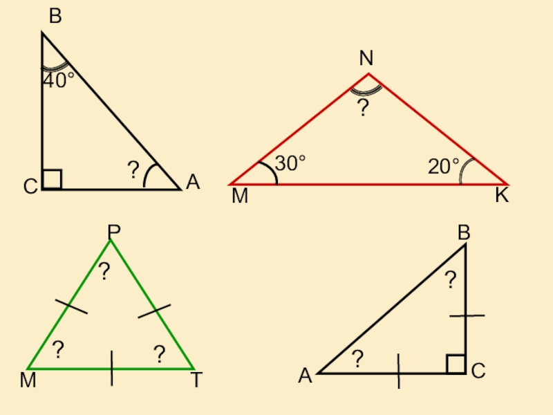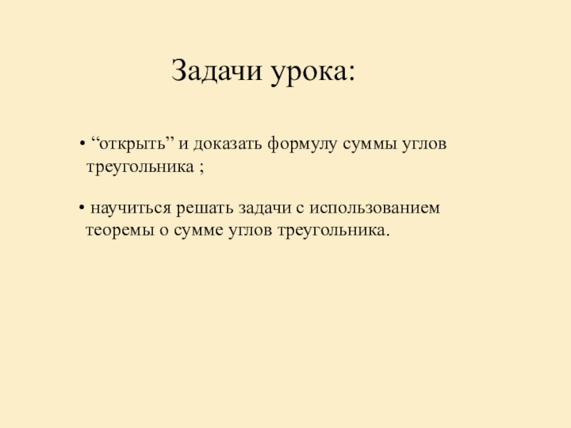 научиться решать задачи с использованием теоремы о сумме углов треугольника.