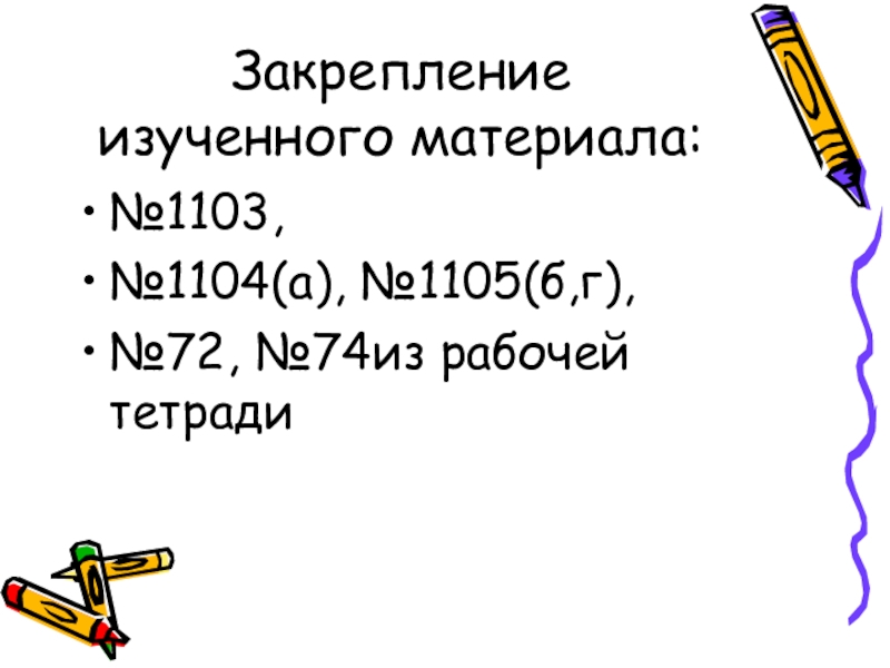 Закрепление изученного материала:№1103,№1104(а), №1105(б,г),№72, №74из рабочей тетради