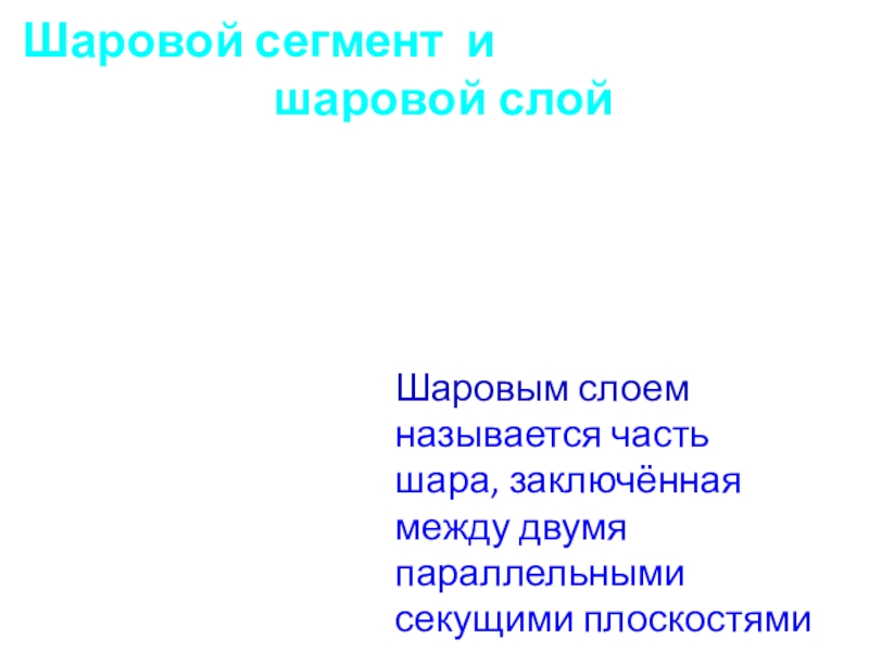 Шаровым слоем называется часть шара, заключённая между двумя параллельными секущими плоскостями
