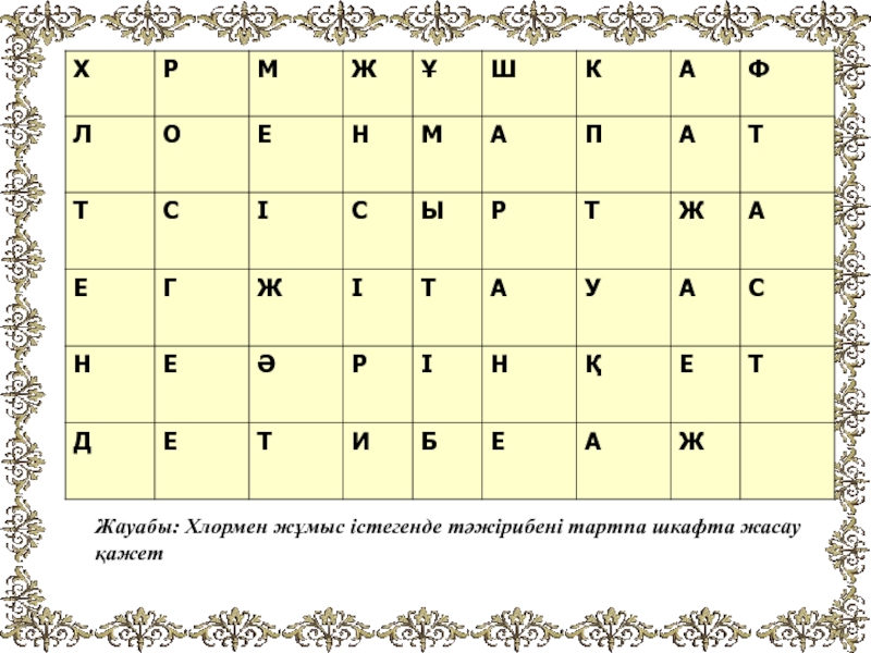 6.«Ойлан, тап» зертханалық жұмыстарда қауіпсіздік ережесін сақтауға байланысты сөйлемді құрастыру керек. Жасырын сөйлем: