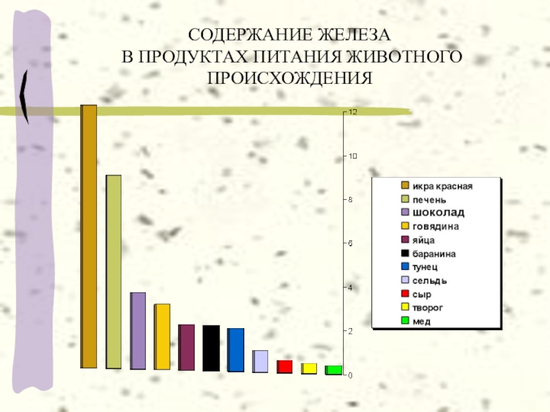 Слайд 3СОДЕРЖАНИЕ ЖЕЛЕЗА В ПРОДУКТАХ ПИТАНИЯ ЖИВОТНОГО ПРОИСХОЖДЕНИЯ