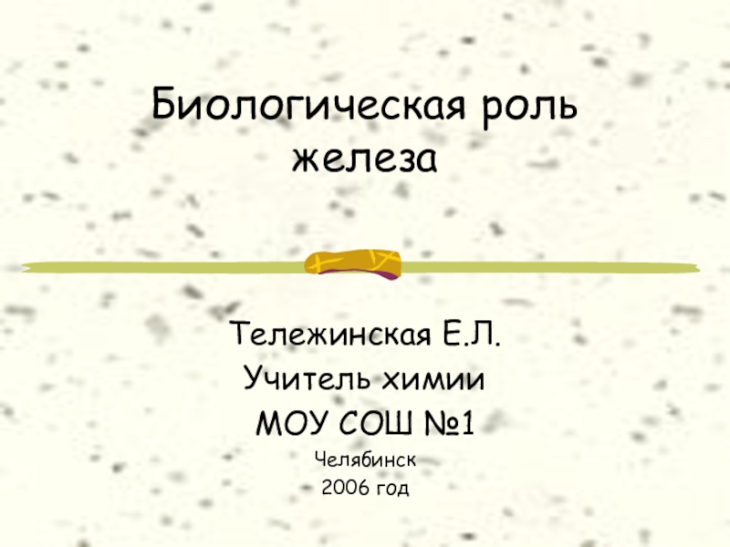 Биологическая роль  железаТележинская Е.Л.Учитель химииМОУ СОШ №1Челябинск2006 год