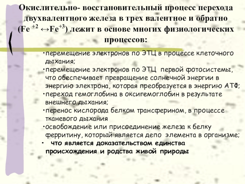 (Fe +2 ↔Fe+3) лежит в основе многих физиологических процессов: