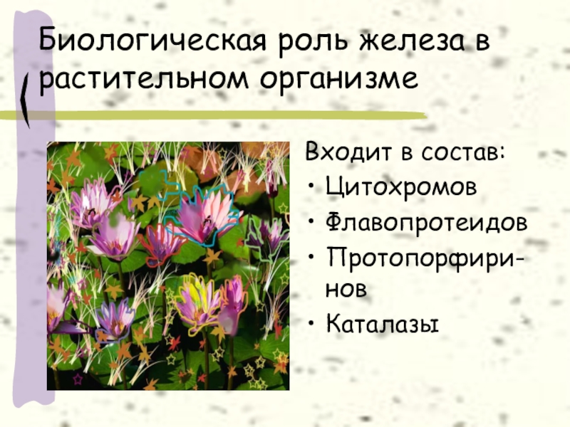 Слайд 10Биологическая роль железа в растительном организме