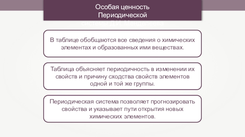 Таблица объясняет периодичность в изменении их свойств и причину сходства свойств элементов одной и той же группы.