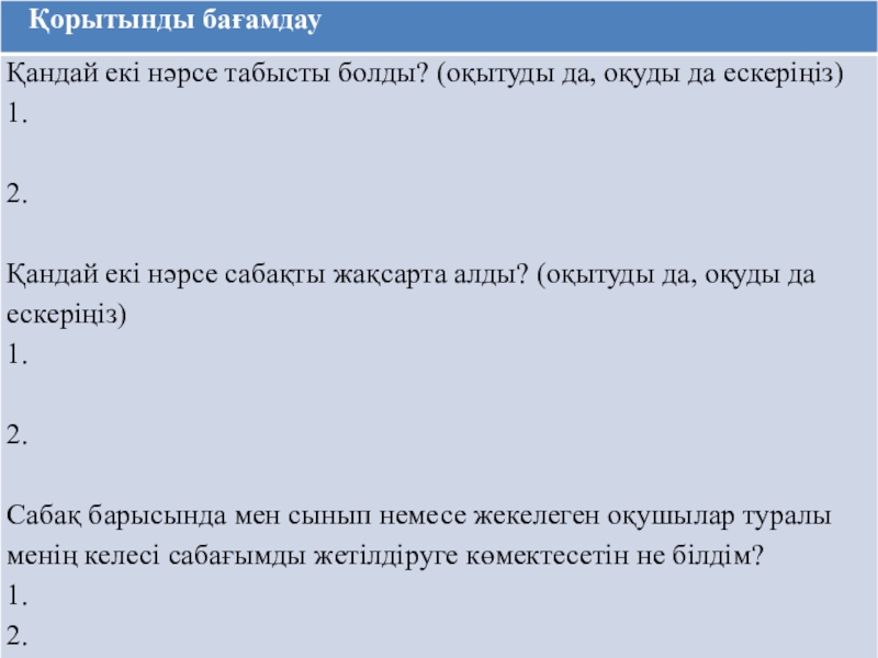 Сабақ негізделген оқу мақсаты S    - нақты M    - қол жетімдіA