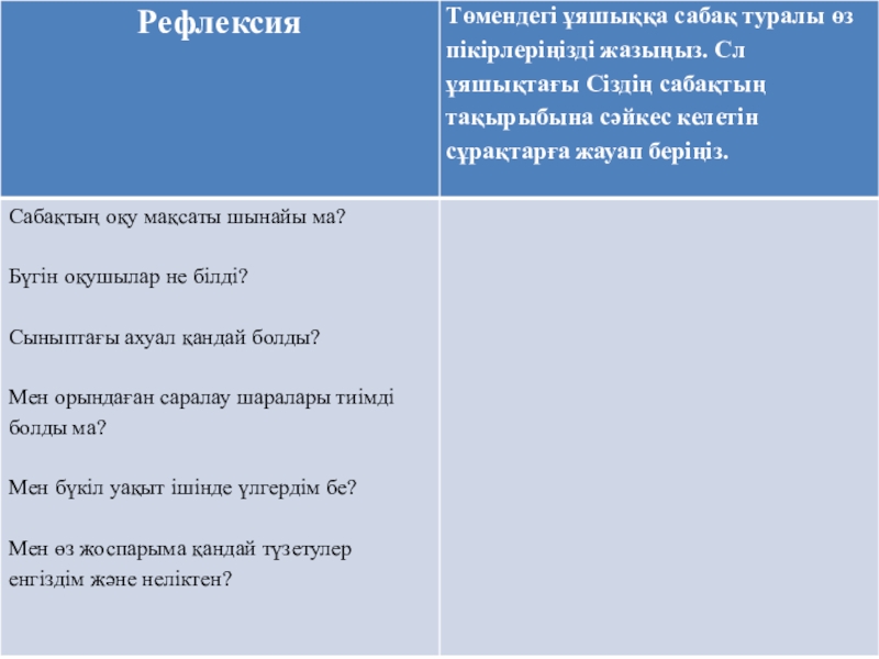 Сабақ негізделген оқу мақсаты S - нақты M - қол жетімдіA - өлшемді R - өлшем тақырыпқа сәйкес