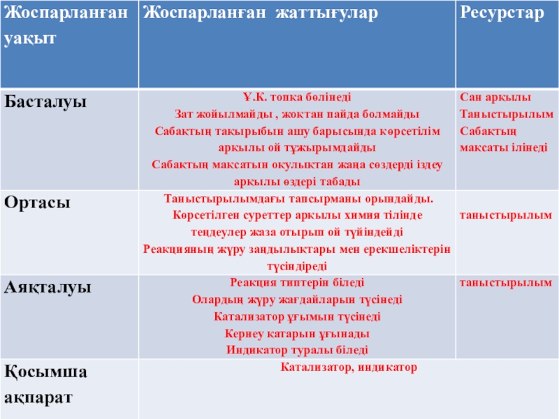Презентация, доклад на тему 8*сынып Химиялық реакция типтері тақырыбы бойынша ҚМЖ үлгісі