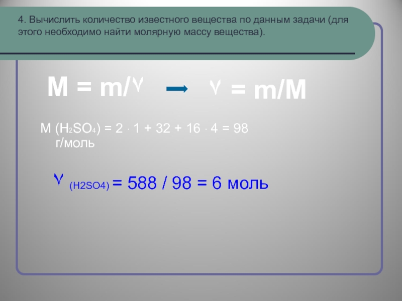 ٧ (H2SO4) = 588 / 98 = 6 моль