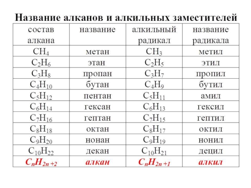 гомологического ряда предельных углеводородов – алканов, имеющих общую формулу CnH2n+2.