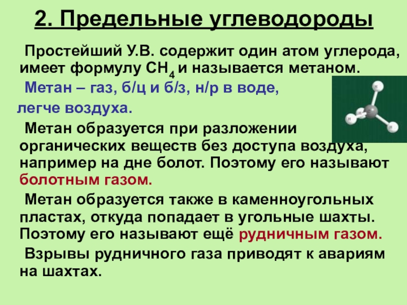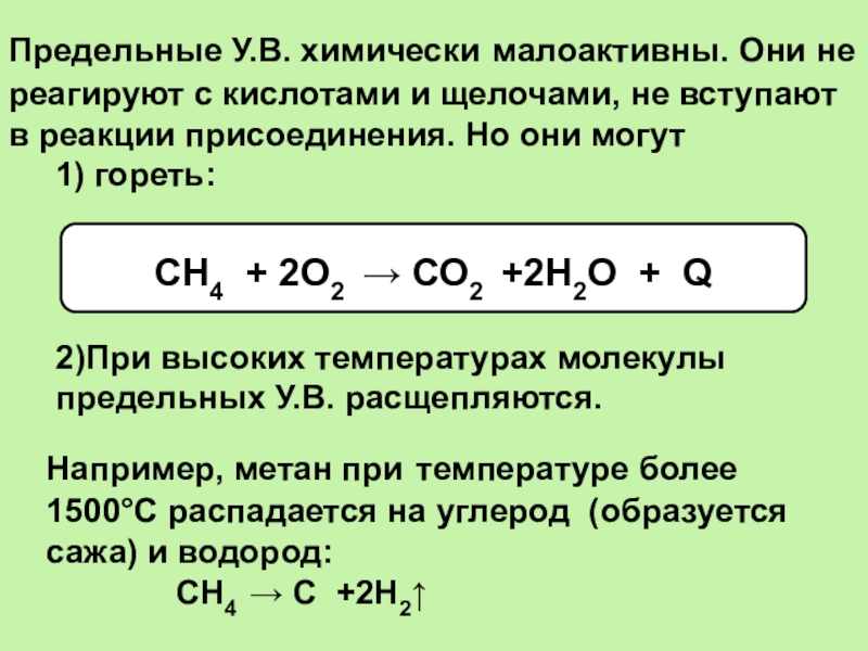 2)При высоких температурах молекулы предельных У.В. расщепляются.