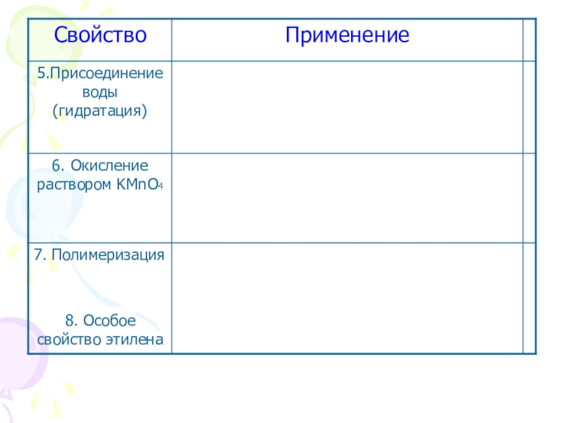свойства (реакции присоединения: галогенирование, Химические свойства (реакции присоединения: галогенирование, гидрирование, гидрогалогенирование, Химические свойства (реакции присоединения: галогенирование, гидрирование, гидрогалогенирование, гидратация; Химические свойства (реакции присоединения: галогенирование, гидрирование, гидрогалогенирование, гидратация; окисление, Химические свойства (реакции присоединения: галогенирование, гидрирование, гидрогалогенирование, гидратация; окисление, реакция полимеризацииХимические свойства (реакции присоединения: галогенирование, гидрирование, гидрогалогенирование, гидратация; окисление, реакция полимеризации)