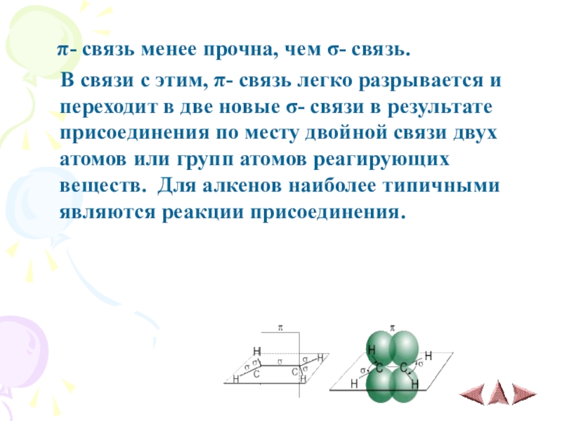 Слайд 9 π- связь менее прочна, чем σ- связь.
