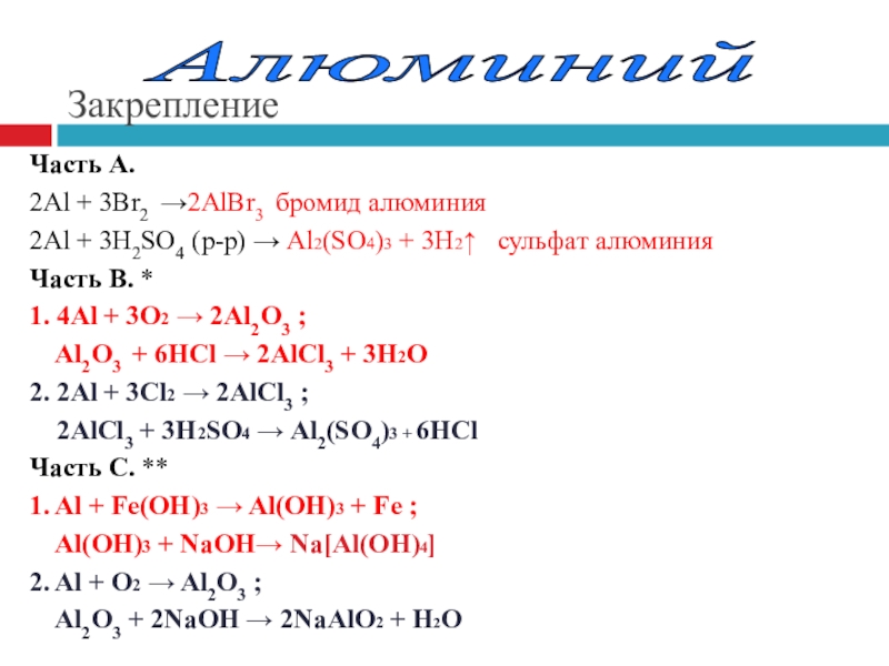 2Аl + 3Cl2 = 2AlCl3