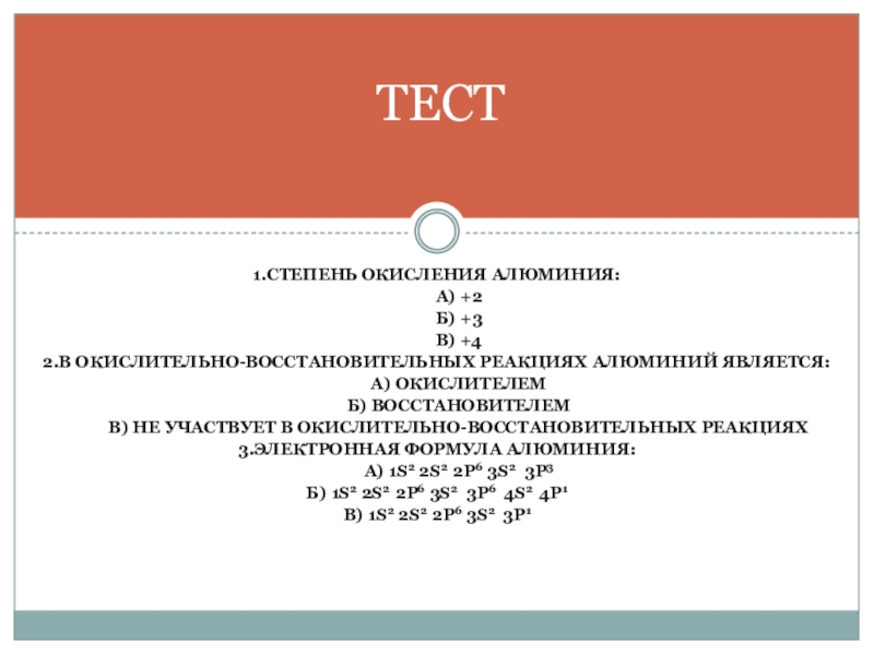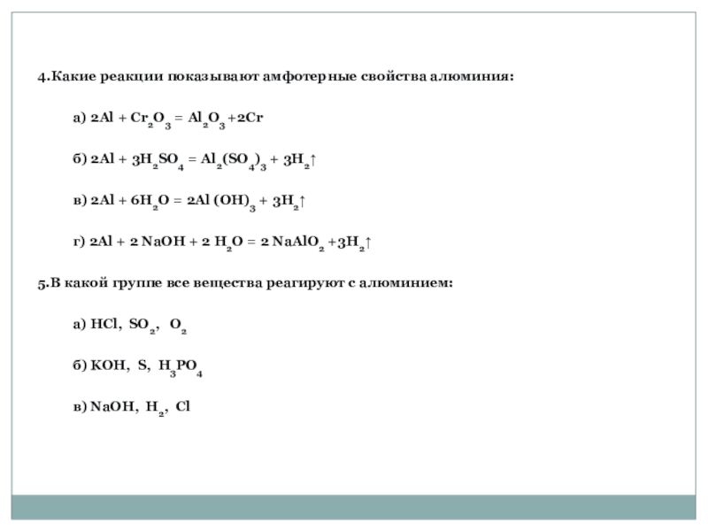 Слайд 94.Какие реакции показывают амфотерные свойства алюминия: