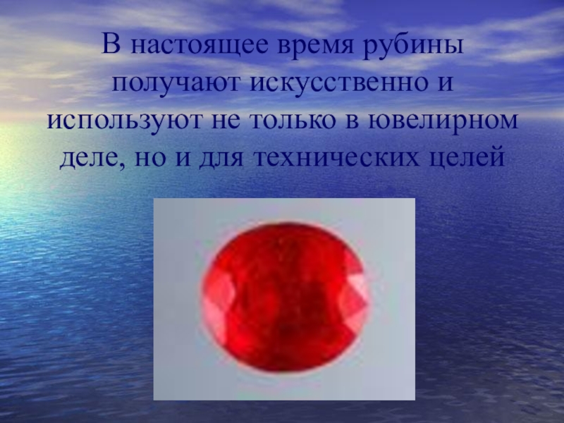 Слайд 15В настоящее время рубины получают искусственно и используют не только в