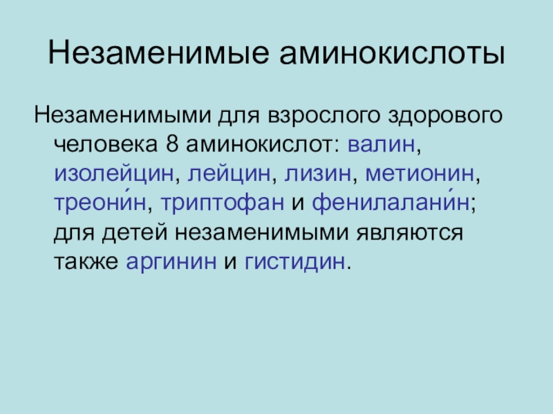 Слайд 5Незаменимые аминокислоты