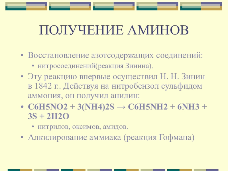 Слайд 9ПОЛУЧЕНИЕ АМИНОВ
