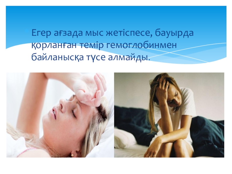 Слайд 6Егер ағзада мыс жетіспесе, бауырда қорланған темір гемоглобинмен байланысқа түсе алмайды.