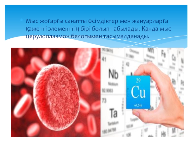 Презентация, доклад на тему Ашық сабақ презентация Мыстың биологиялық рөлі