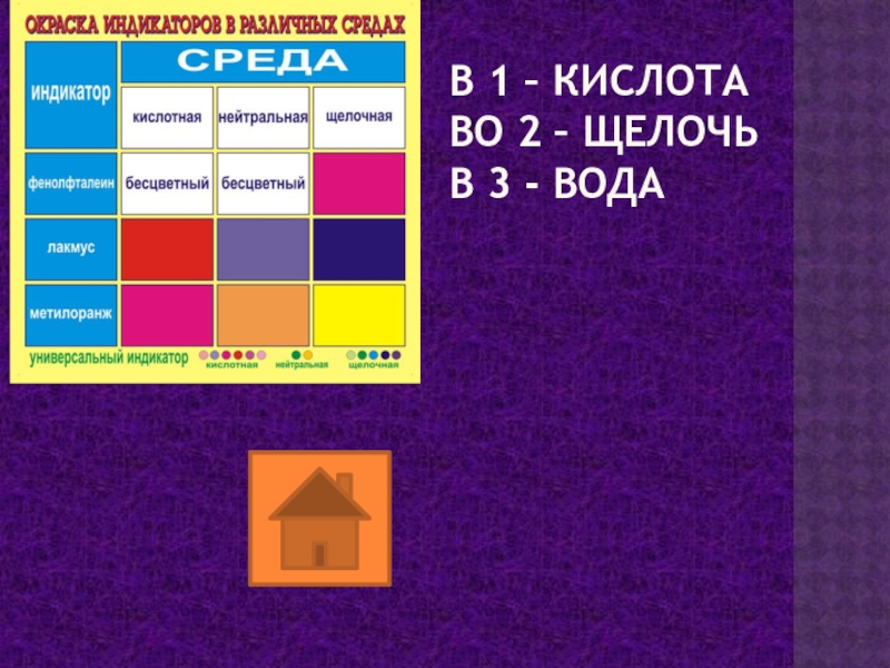 Слайд 44В 1 – кислота во 2 – щелочь в 3 - вода