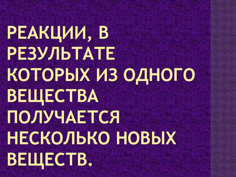 Слайд 7реакции, в результате которых из одного вещества получается несколько новых веществ.