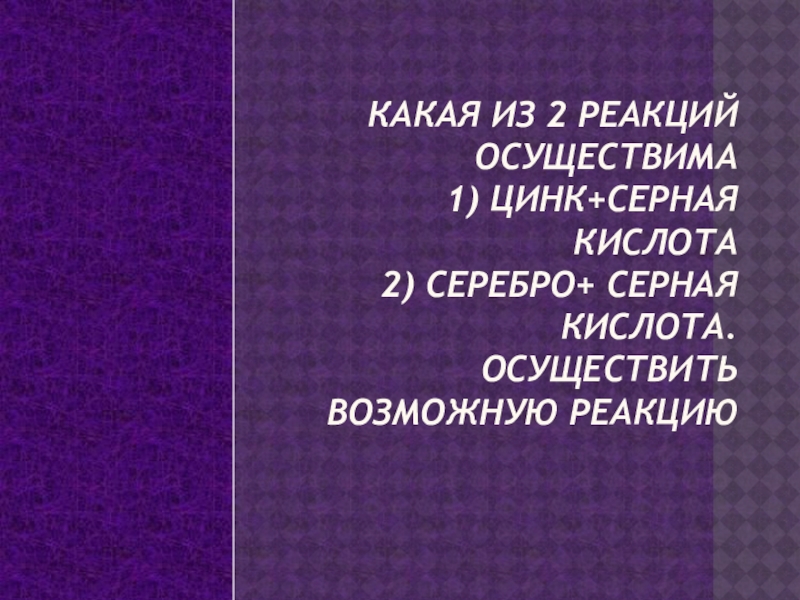 Слайд 51Какая из 2 реакций осуществима 1) цинк+серная кислота 2) серебро+ серная кислота. Осуществить