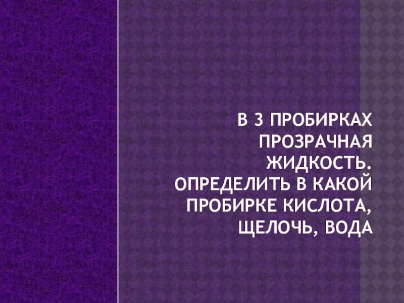 Слайд 43В 3 пробирках прозрачная жидкость. Определить в какой пробирке кислота, щелочь,