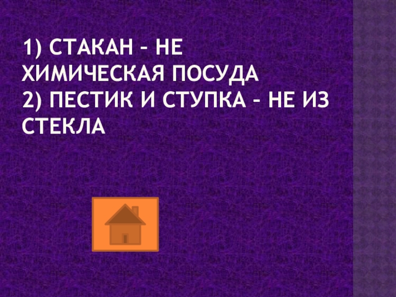Слайд 401) Стакан – не химическая посуда 2) Пестик и ступка – не