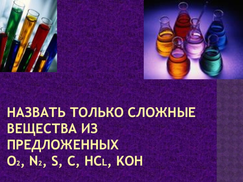 Слайд 11Назвать только сложные вещества из предложенных О2, N2, s, c, Hcl, koh