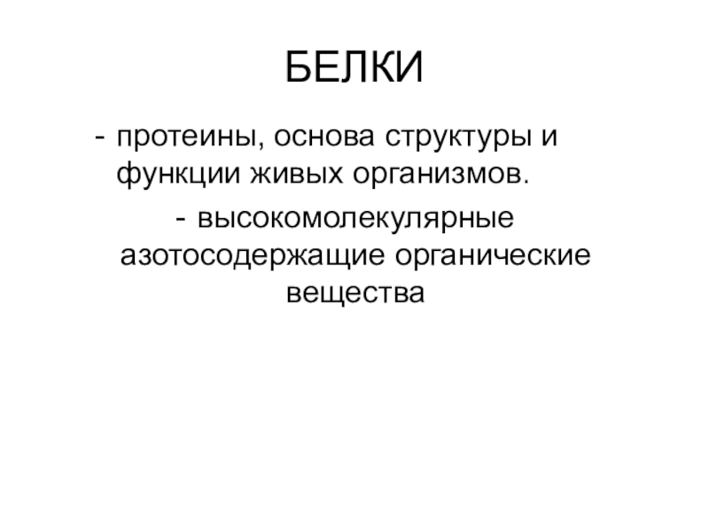 БЕЛКИпротеины, основа структуры и функции живых организмов.высокомолекулярные азотосодержащие органические вещества