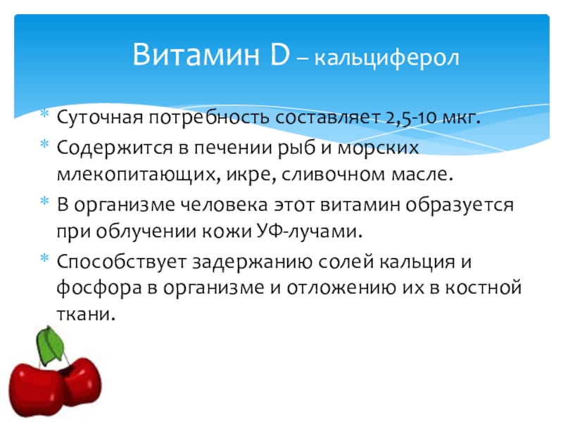 Слайд 13Витамин D – кальциферол