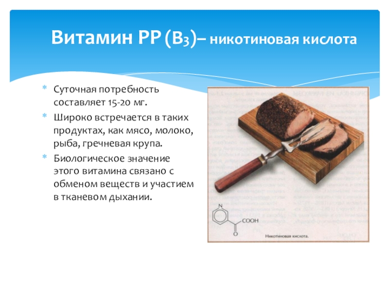 Слайд 8Витамин РР (В3)– никотиновая кислота