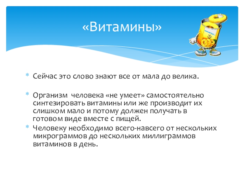 Человеку необходимо всего-навсего от нескольких микрограммов до нескольких миллиграммов витаминов в день.