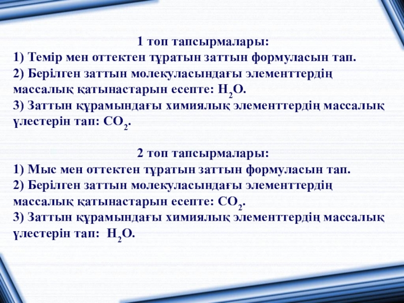 кезеңіне тапсырмалар