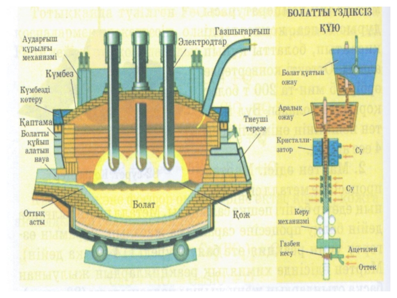 А) колошник, шахта Б) көрік, құю құрылғысы