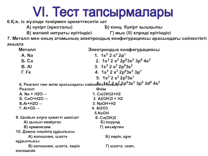 8. Реагент пен өнім арасындағы сәйкестікті анықта