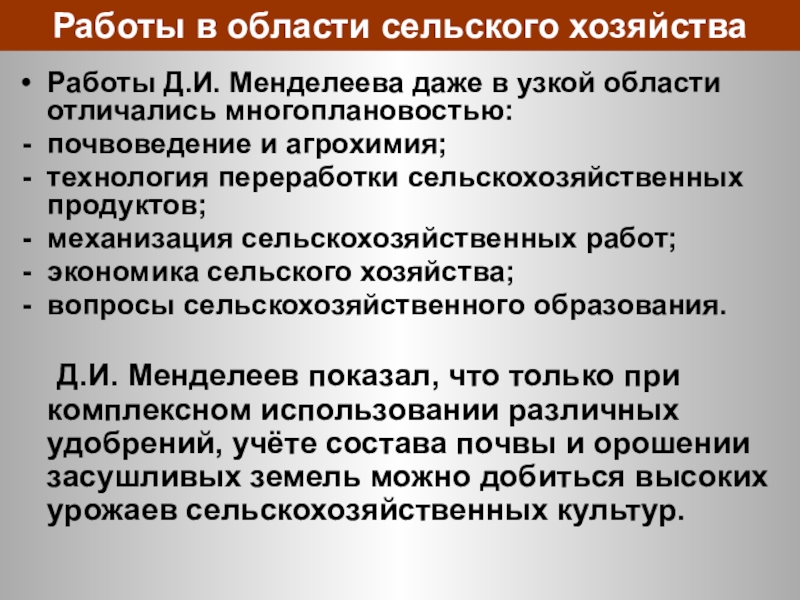 «Об организации сельскохозяйственных опытов», ставшее началом его научно-исследовательских работ по сельскому хозяйству.