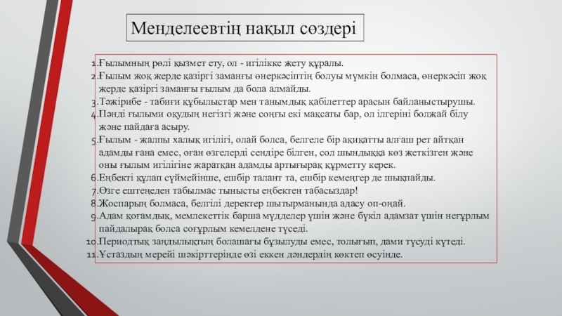 Периодтық заңдылықтың болашағы бұзылуды емес, толығып, дами түсуді күтеді.
