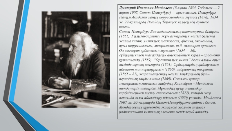 Слайд 2Дмитрий Иванович Менделеев (8 ақпан 1834, Тобольск — 2 ақпан 1907,