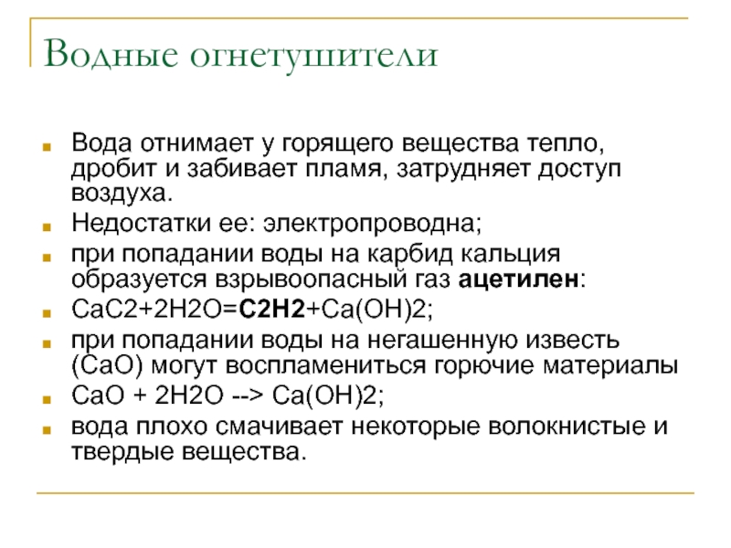возможность появления значительных тепловых напряжений в результате резкого охлаждения объекта тушения;