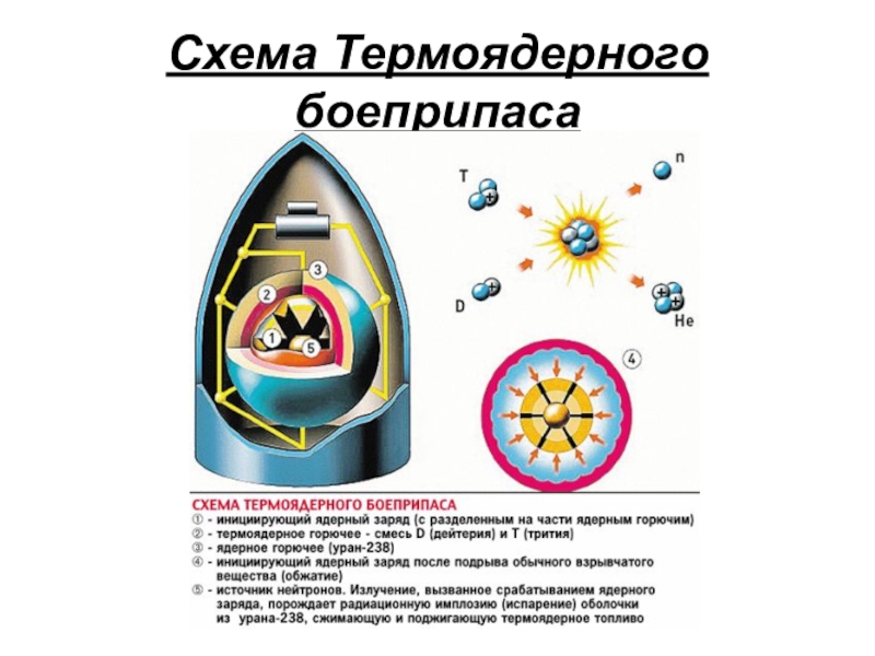 Термоядерные заряды Действие термоядерного оружия основывается на реакции синтеза ядер легких элементов .