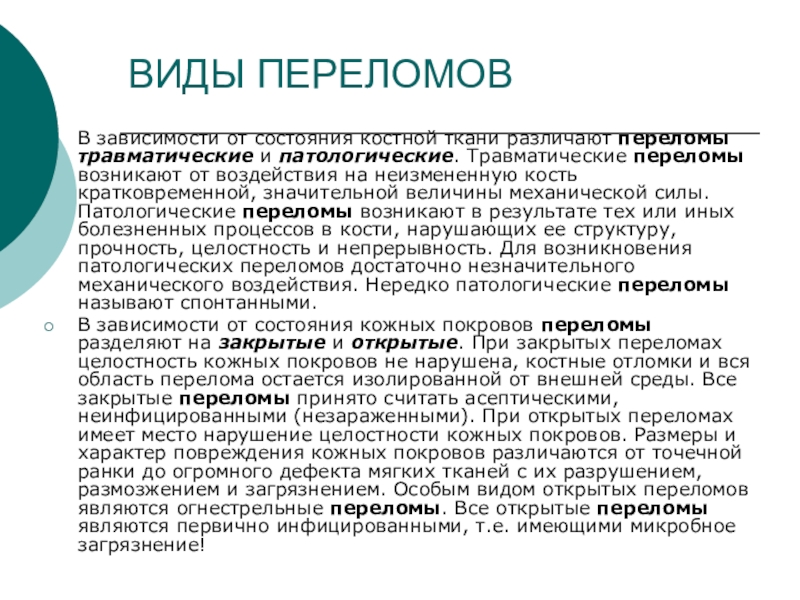 Слайд 4ВИДЫ ПЕРЕЛОМОВ