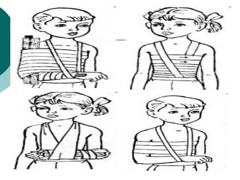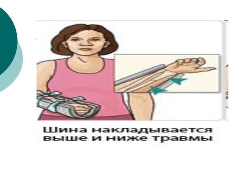 Слайд 14Первая помощь при переломе лучевой кости в «типичном месте»