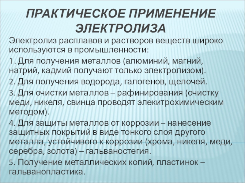 Слайд 17ПРАКТИЧЕСКОЕ ПРИМЕНЕНИЕ ЭЛЕКТРОЛИЗА