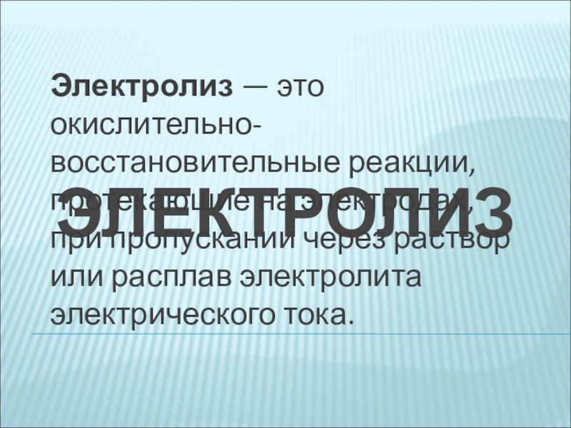 Электролиз — это окислительно-восстановительные реакции, протекающие на электродах, при пропускании через