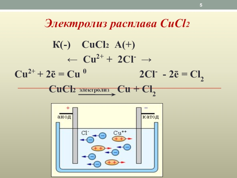 Cu2+ + 2ē = Cu 0 2Cl- - 2ē = Cl2