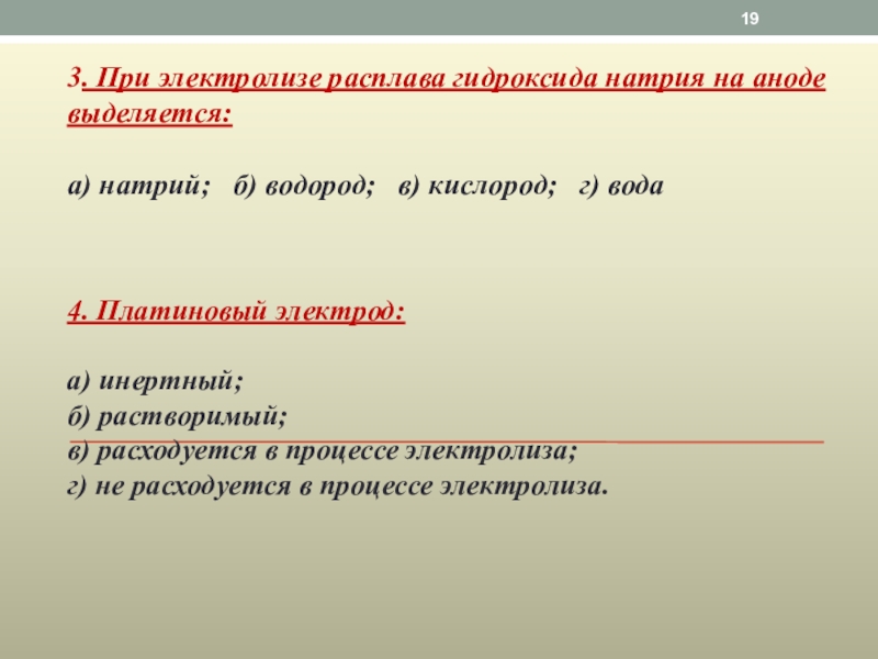3. При электролизе расплава гидроксида натрия на аноде выделяется: