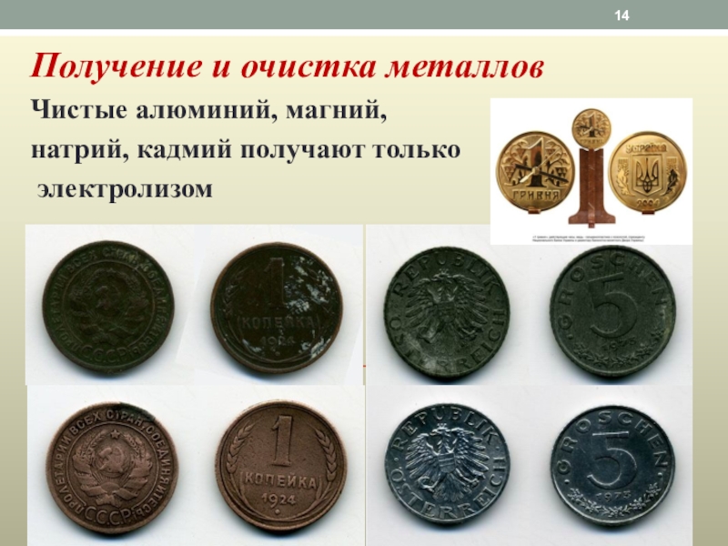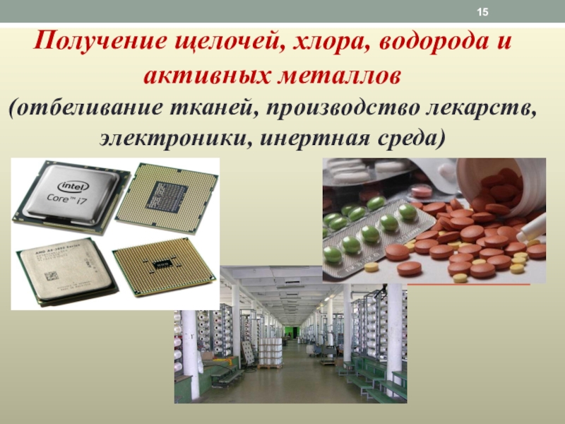 Слайд 15Получение щелочей, хлора, водорода и активных металлов